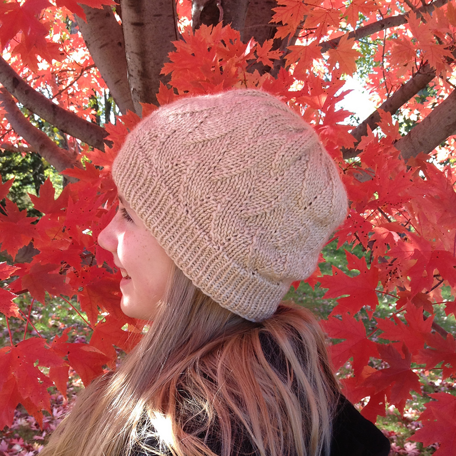 Worked from the toe up to maximize the yarn you have, Autumn Leaves are Falling Socks combine panels of leaf lace with tiny cables. They feature a gusset and heel flap construction.
